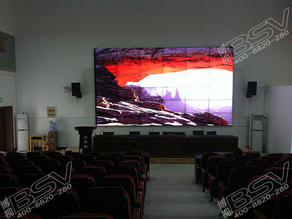 拼接方式:此款46寸液晶拼接屏采用1組6X6拼接方式,采用壁掛式安裝,先進(jìn)BSV拼接技術(shù)拼縫窄至6.7mm,用于階梯教室的視頻教育及會(huì)議顯示。武漢博視同創(chuàng)電子有限公司工程技術(shù)人員通過(guò)對(duì)大屏幕參數(shù)設(shè)置調(diào)整使得大屏幕播放效果與整個(gè)大環(huán)境相得益彰,滿足眼部45度舒適觀看。壁掛式安裝,統(tǒng)一每一個(gè)單元準(zhǔn)確調(diào)整,壓力排線保護(hù)施工,誤差小至0.0001mm。施工專業(yè)要求與整個(gè)房間對(duì)稱協(xié)調(diào),屏幕光線亮度設(shè)置恰到好處適應(yīng)室內(nèi)觀看。